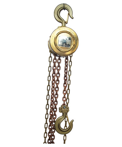 防爆手拉葫蘆采用鋁青銅、鈹青銅作為毛坯,外殼采用H62銅合金材料,其轉(zhuǎn)動(dòng)齒輪經(jīng)過高溫?zé)崽幚韽亩_(dá)到齒輪據(jù)有很高的耐磨性。防爆手拉葫蘆能夠在易燃易爆的環(huán)境下作業(yè),在作業(yè)過程中不會(huì)因零部件相互摩擦撞擊而產(chǎn)生機(jī)械火花,提高作業(yè)的安全性。